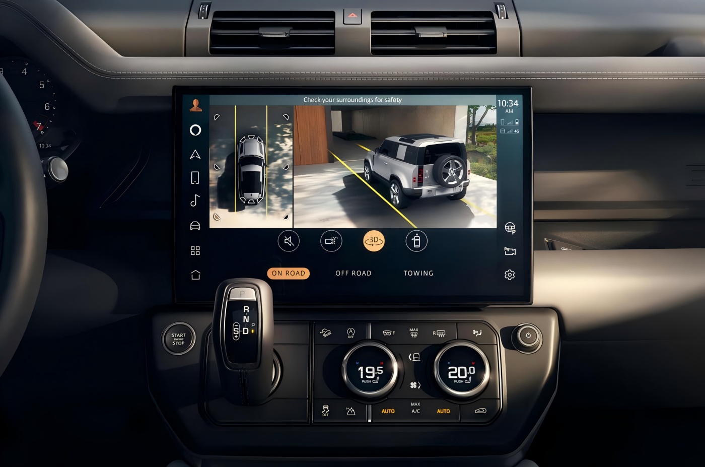 الداخلية. وفيما يتعلق بالداخلية، فإن التصميم العام للسيارة الجديدة لم يتغير كثيرًا. لا يزال يأتي مزودًا بلوحة عدادات كاملة من الكريستال السائل وعجلة قيادة متعددة الوظائف ثلاثية الأضلاع. تمت ترقية شاشة عرض الوسائط المتعددة الموجودة في منتصف الكونسول الوسطي من 11.4 بوصة إلى 13.1 بوصة. وفي الوقت نفسه، أضافت السيارة الجديدة نظام مراقبة السائق. يتوافق نظام المراقبة هذا مع لوائح الاتحاد الأوروبي GSR2. إذا تم اكتشاف أن السائق لا ينتبه للطريق أمامه، فسيتم إطلاق إنذارات صوتية وفيديو. ومع ذلك، يمكن ضبط مساعدة السائق على وضع التعطيل في الخيارات الموجودة على شاشة الكونسول المركزي. بالإضافة إلى ذلك، يتم أيضًا تقديم نظام التحكم في السرعة التكيفي على الطرق الوعرة من لاند روفر لأول مرة في لاند روفر ديفيندر كميزة اختيارية.