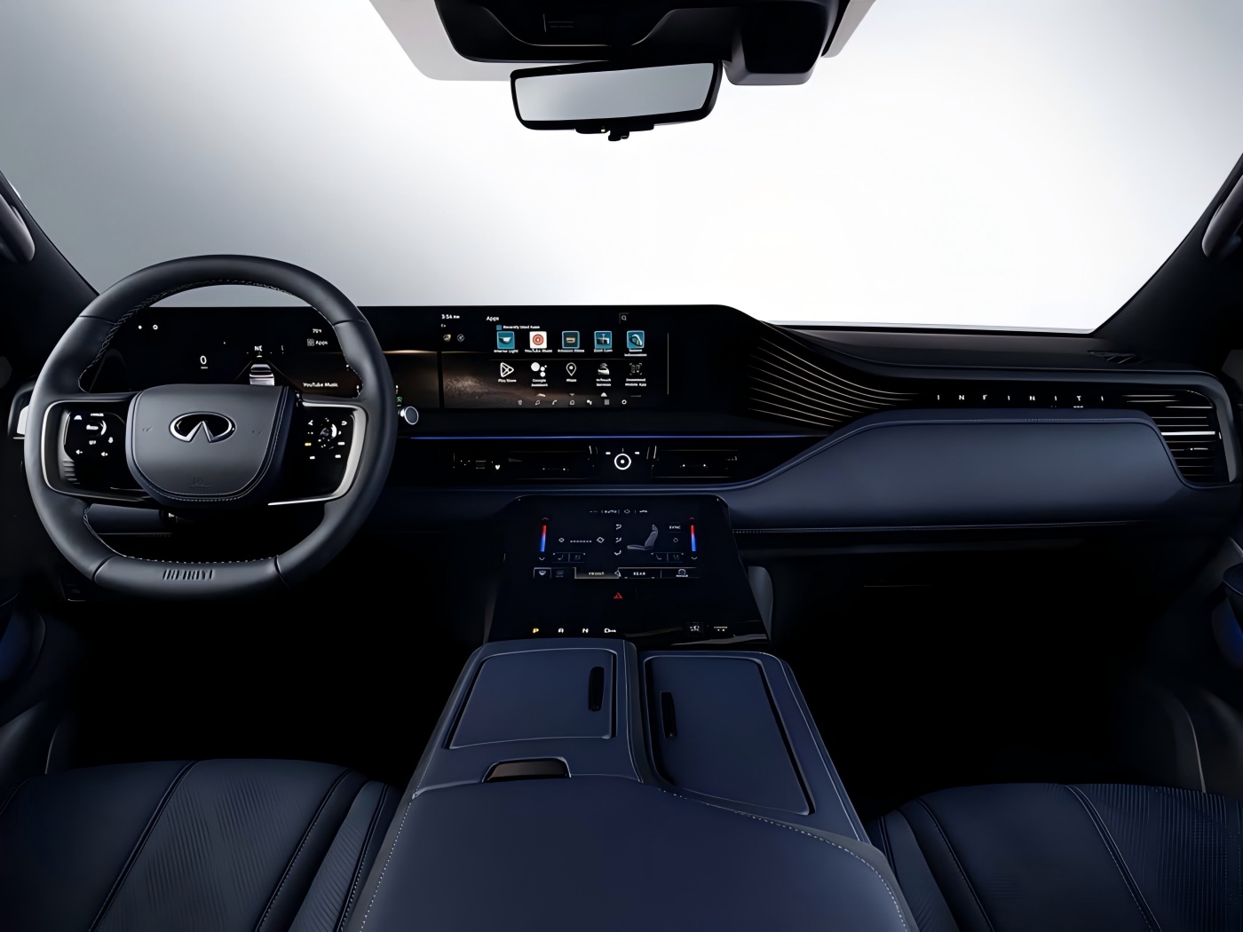 تتميز المقصورة باللون الأزرق الشفقي، مع مقاعد جلدية شبه أنيلين باللونين الأسود والأزرق تتميز بأنماط مثقوبة على شكل ماسة، مما يكمل المظهر الداكن للجزء الخارجي. بالإضافة إلى ذلك، تم تجهيز المقصورة الداخلية بشاشة مزدوجة مقاس 14.3 بوصة، كما توجد شاشة تحكم متعددة الوظائف مقاس 9 بوصة في الجزء السفلي من الكونسول الوسطي. يتم التحكم في نقل الحركة عن طريق الأزرار الموجودة أسفل الشاشة. تتميز كل من الشاشة شبه المنحرفة وعجلة القيادة ثنائية الأضلاع بتصميمات مميزة.